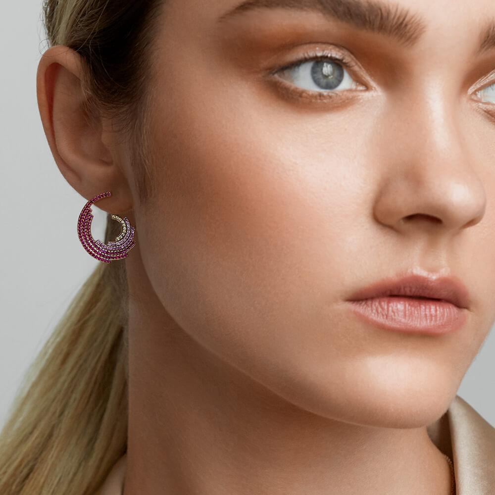 Gradient swirls of colour brings a majestic charm to our statement Galaxy Earrings. With a blend of yellow sapphires and rubies, the Galaxy Earrings fuse modern design and luxury seamlessly.
