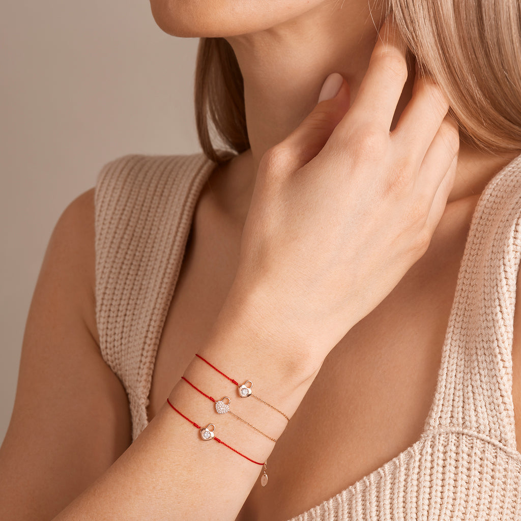 A charming heart-shaped lock designed with love in mind brings together 18ct rose gold and sleek red cord. Ideal for gifting someone special, secure love and friendship with the RUIFIER Haven Core Zeal Hybrid Bracelet.