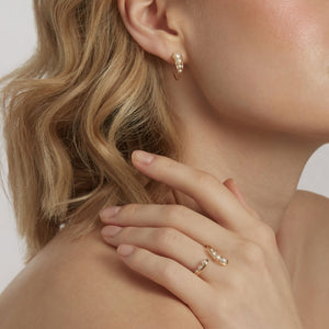 With an 18ct yellow gold hoop-like design, the RUIFIER Morning Dew Droplet Earrings reveal a new twist on the classic gold hoop. Paved with irresistible pearls, these earrings are perfect for every occasion, from days in the city to elegant evenings.