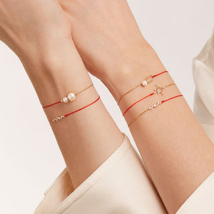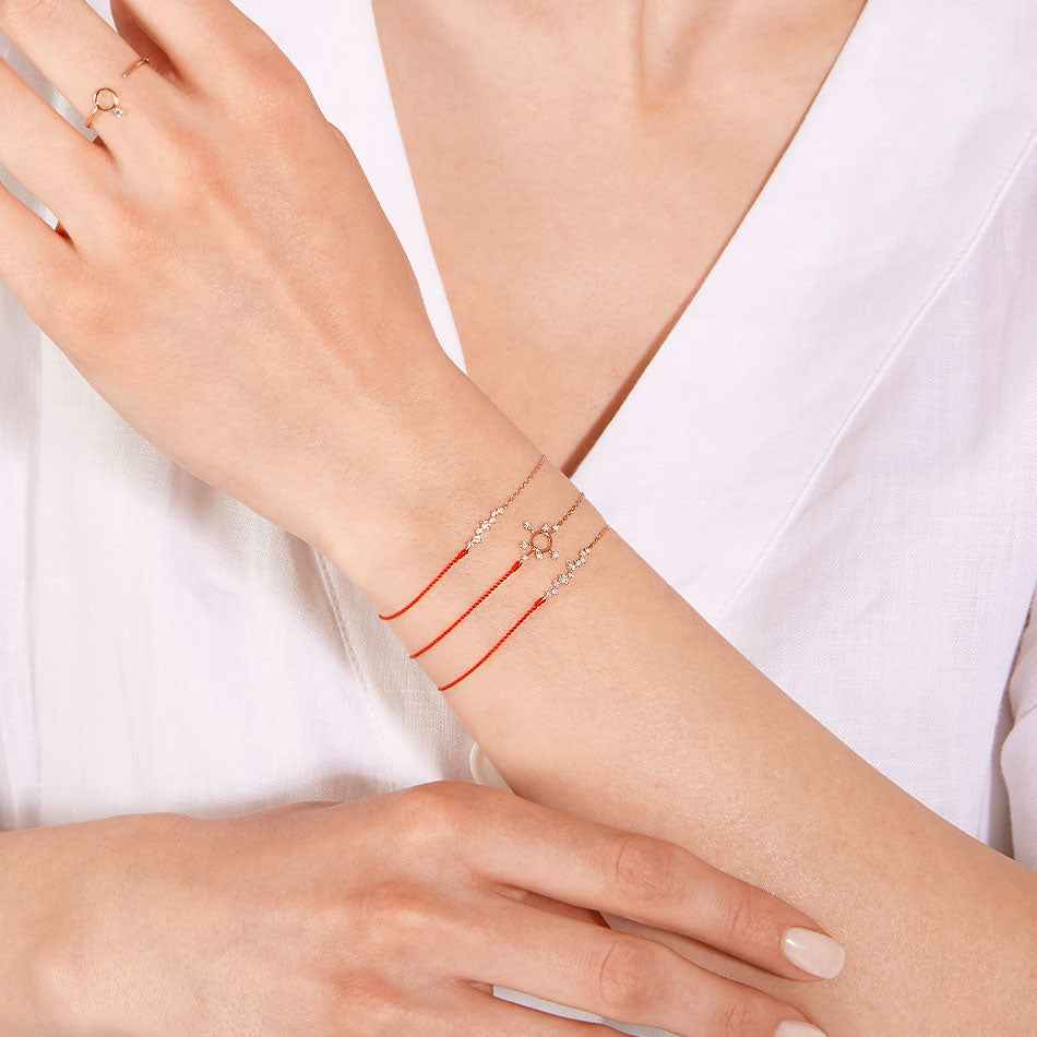 For the love of diamonds, the RUIFIER Scintilla Epta Orb Hybrid Bracelet features seven transcendent diamonds representing the radiant stars in our sky and is finished off perfectly with 18ct yellow or rose gold chain and stylish red cord.